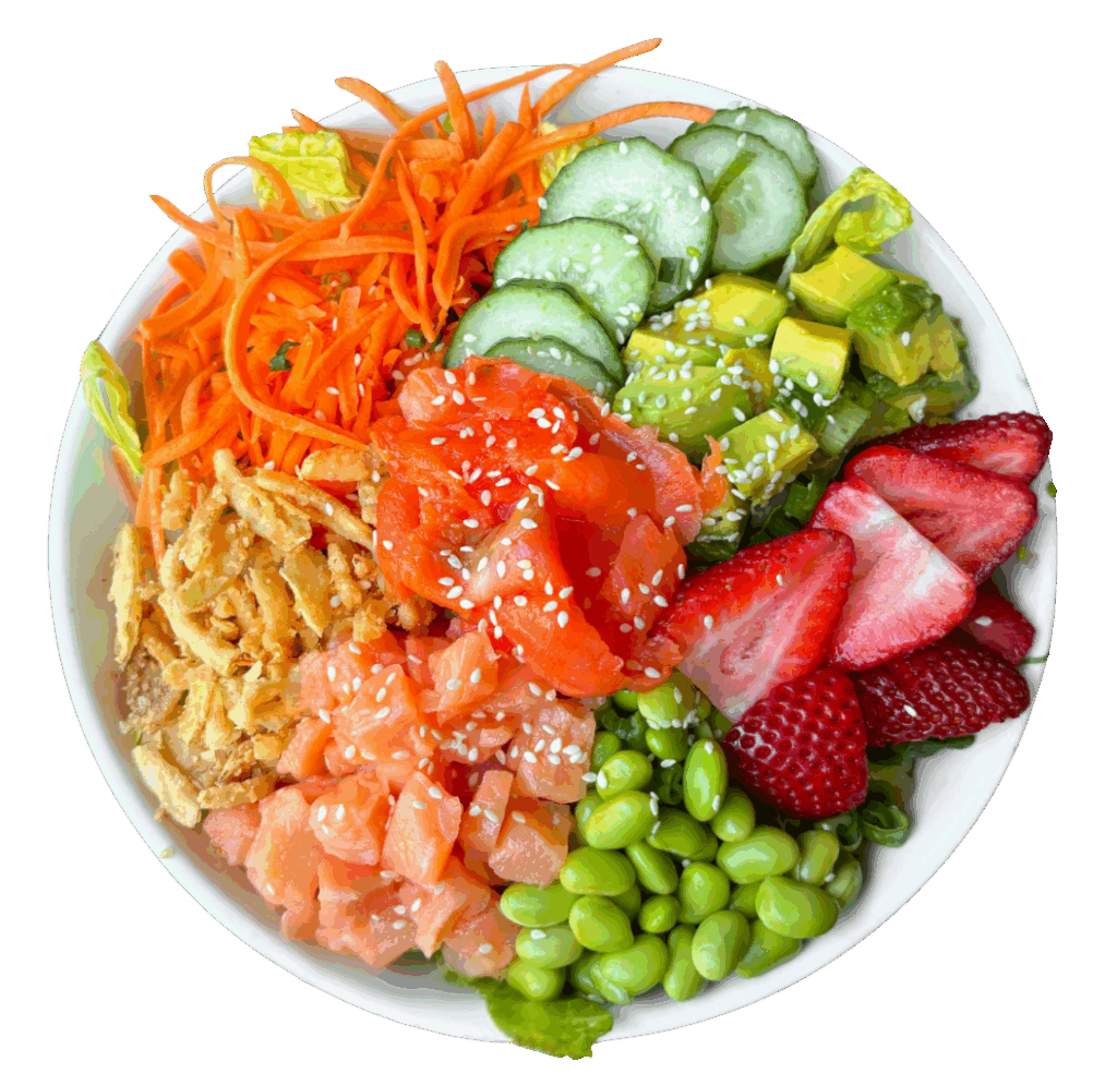 Salades gourmandes, soupes ou potages du jour, sandwichs, poke bowl estivaux, soupe repas style asiatique, cafés et breuvages spécialisés.